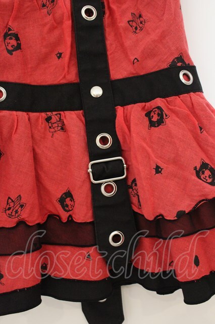 HANGRY&ANGRY / H&Aフェイスプリントしっぽ付きティアードスカート レッド×ブラック O-26-01-22-042-HN-SK-IG-OS