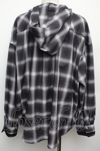 axes femme / フード付きチェックシャツ グレー S-26-01-21-021-AX-BL-AS-ZS