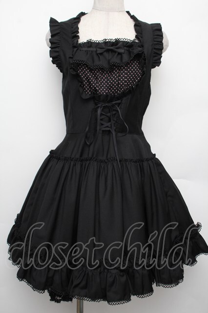 BPN / レースアップフリルジャンパースカート 黒 S-26-01-21-036-GO-OP-AS-ZS