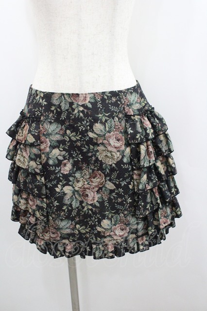 EXCENTRIQUE / ゴブランサイドフリルスカート 黒XブラウンXピンク I-26-01-22-055-EL-SK-SA-ZI