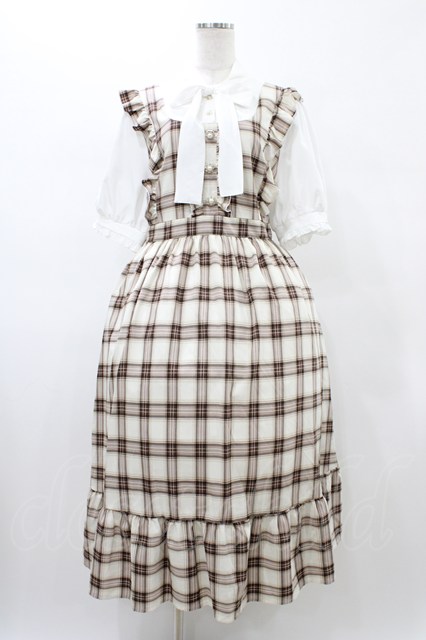 majoretty / ドッキングチェックワンピース 4L オフ/ブラウン H-26-01-27-056-0-OP-NS-ZH