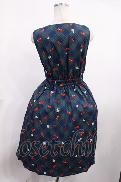 axes femme POETIQUE / チェリー柄チェックワンピース M グリーン H-26-01-27-1019-AX-OP-NS-ZH