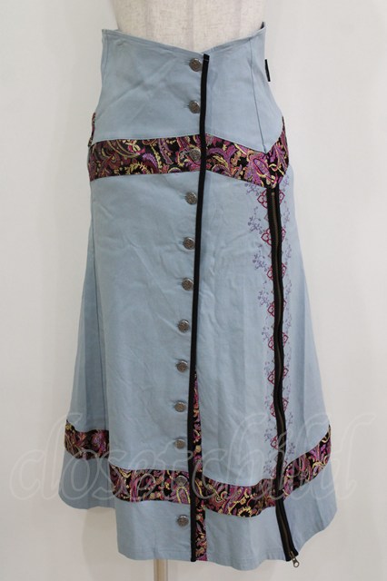 Ozz oneste / ジャガード切替ロングスカート ライトブルー H-26-01-28-019-OO-SK-KB-ZH