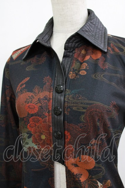 Qutie Frash / 和柄オーバーブラウス ブラック H-26-01-28-034-QU-BL-KB-ZH