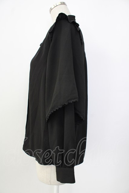 axes femme / レイヤードフレア袖ブラウス 黒 T-26-01-26-010-AX-BL-SA-ZT