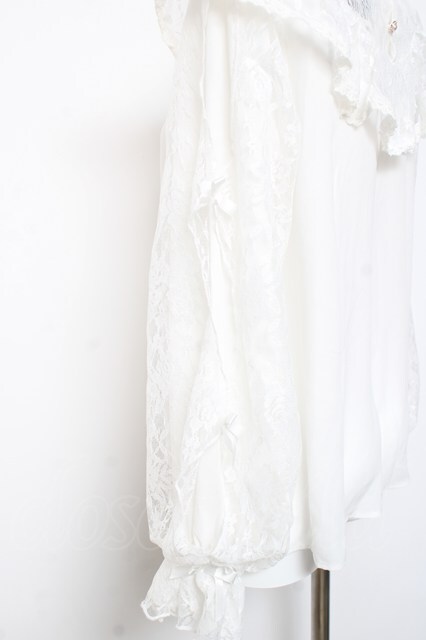 axes femme kawaii / ヴィンテージシフォンブラウス 白 Y-26-01-24-051-AX-BL-SZ-ZY
