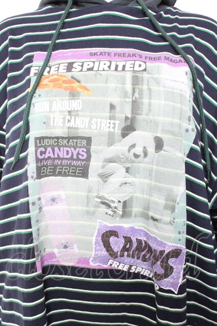 Candy Stripper / FREE SPIRITED MAGAZINEフーディー 2 紺 Y-26-01-24-063-PU-TO-SZ-ZY
