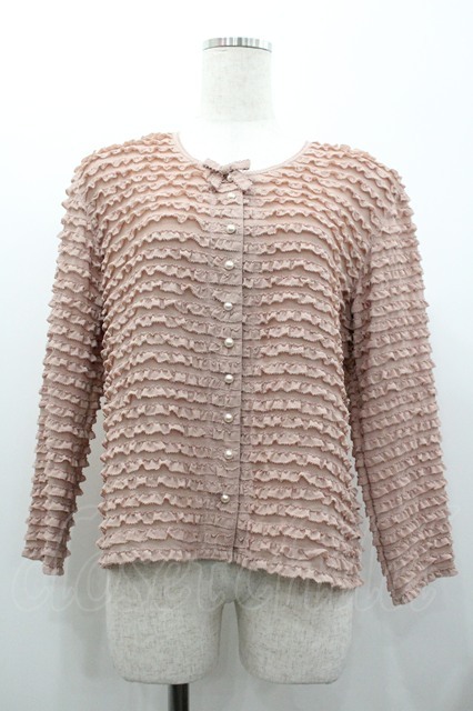 KANEKO ISAO / パールボタンピコフリルボーダーブラウス ピンク I-26-01-24-015-EL-BL-SA-ZI