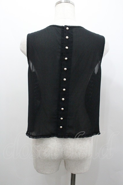 KANEKO ISAO / ピコフリルボーダーシフォンノースリーブブラウス ブラック I-26-01-24-018-EL-BL-SA-ZI [戻る]