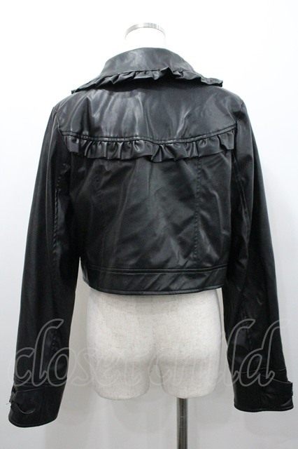 axes femme kawaii / フリル合皮ライダース 黒 I-26-01-24-030-AX-JA-AS-ZI [戻る]