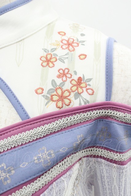 Ozz oneste / 桜刺繍チャイナス着物袖スナップボタンカーディガン パープルX白 I-26-01-24-069-OO-TO-SA-ZI