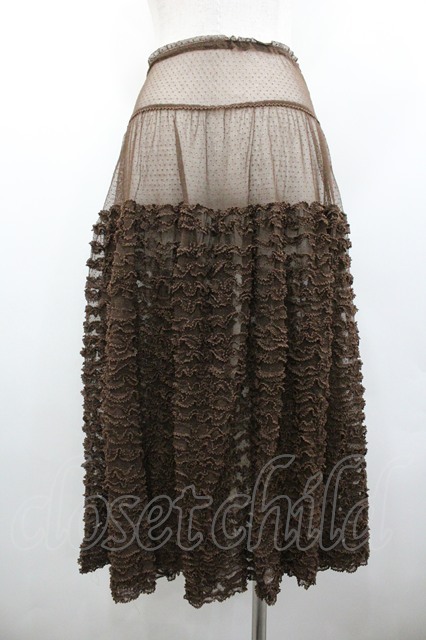 KANEKO ISAO / チュールフリルオーバースカート ブラウン I-26-01-24-082-EL-SK-SA-ZI