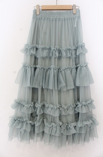 axes femme / フリルチュールティアードスカート F グリーン O-26-01-23-010-AX-SK-OW-OS