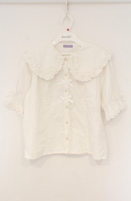 axes femme kawaii / 半袖丸襟コットンブラウス M シロ O-26-01-23-025-AX-BL-OW-OS