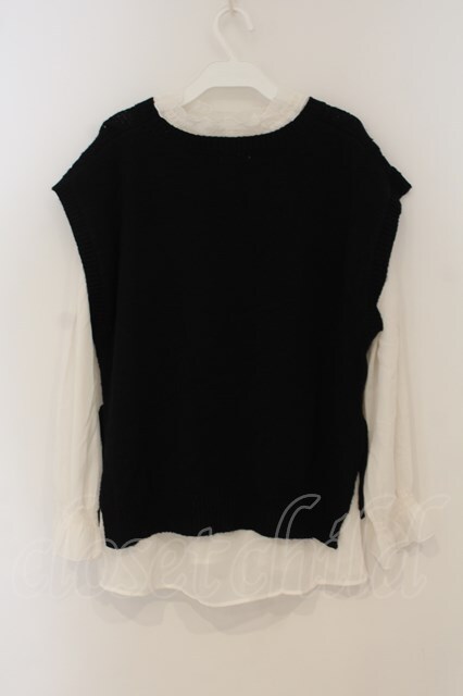 axes femme / ニットベストアンサンブル M シロ×クロ O-26-01-26-047-AX-TO-OW-OS