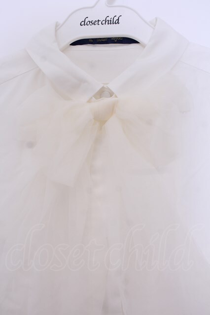 an another angelus / チュールリボンタイ5分袖シャツ【洗える】 シロ O-26-01-27-051-CA-BL-IG-OS [戻る]