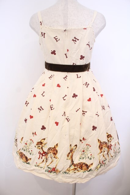 Emily Temple cute / バンビプリントリボンベルトノースリーブワンピース アイボリー O-26-01-27-041-ET-OP-OW-OS