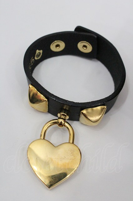 Q-pot. / ハートロック・パドロックレザーブレスレット 黒Xゴールド I-26-01-26-028-QP-AC-SA-ZI
