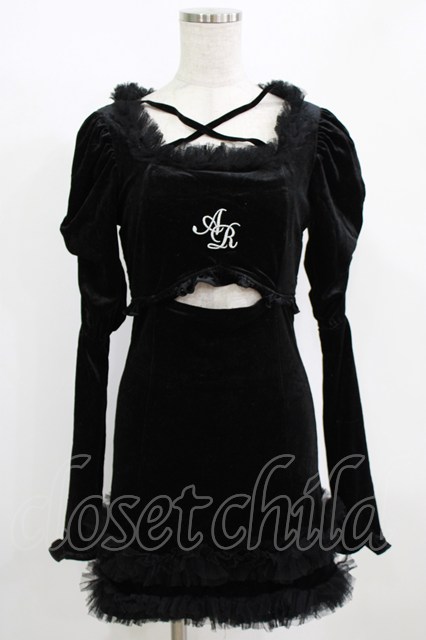 Ank Rouge / チュールフリルフロントあきベロアワンピース M ブラック H-26-01-30-026-CA-OP-NS-ZH [戻る]