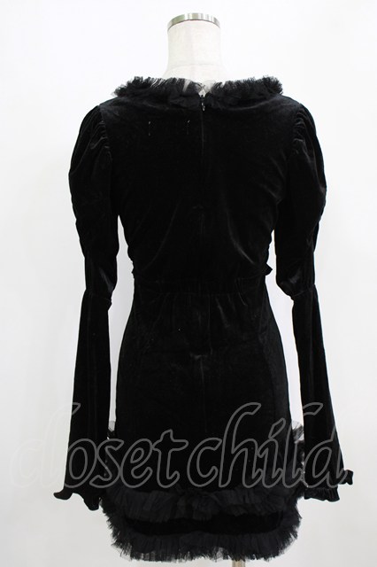 Ank Rouge / チュールフリルフロントあきベロアワンピース M ブラック H-26-01-30-026-CA-OP-NS-ZH