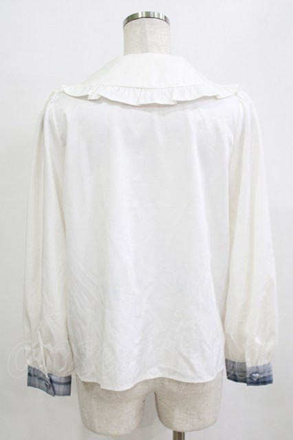Ank Rouge / パールリボンブラウス M オフ/ブルー H-26-01-30-046-CA-BL-NS-ZH