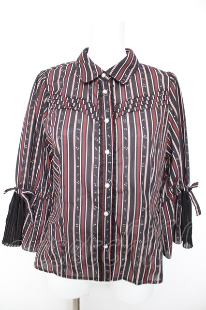 axes femme POETIQUE / 音符レジメストライプブラウス M 黒 Y-26-01-28-044-AX-BL-SZ-ZY