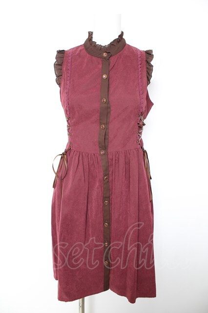 axes femme POETIQUE / 編み上げワンピース M ワイン Y-26-01-28-101-AX-OP-SZ-ZY