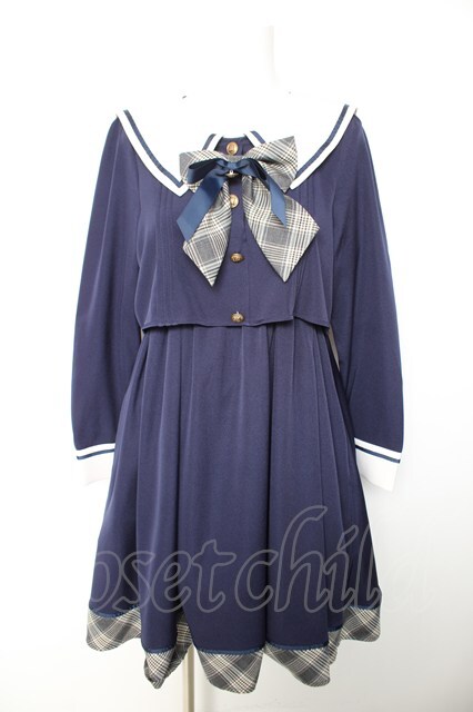 Amavel / Check Ribbon Setup風セーラーワンピース F ネイビー Y-26-01-28-126-CA-OP-SZ-ZY