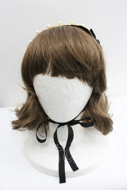 Emily Temple cute / パールリボン麦わらヘッドドレス アイボリーXブラウン I-26-01-27-047-ET-AC-SA-ZI
