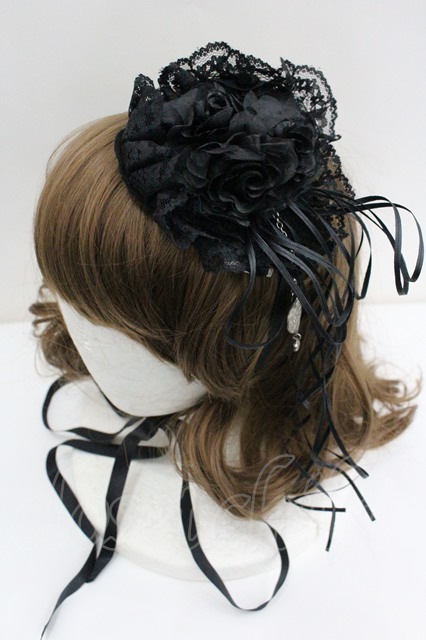 Triple fortune / コサージュヘッドドレス 黒 I-26-01-27-053-EL-AC-HR-ZI