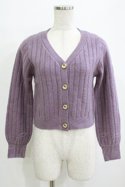 an another angelus / クレマチスプリント釦リブニットカーディガン Free LAVENDER H-26-02-02-057-CA-TO-NS-ZH
