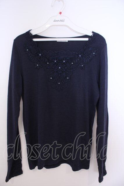 axes femme / フラワーレース使いインナープルオーバー M ネイビー O-26-01-28-015-AX-TO-OW-OS