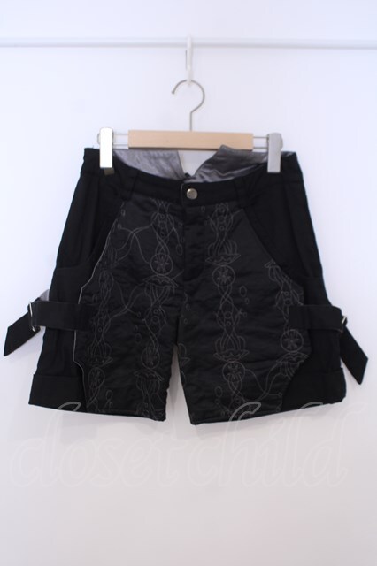 Sixh / 刺繍入りサテンショートパンツ ブラック O-26-01-28-051-HN-PA-IG-OS