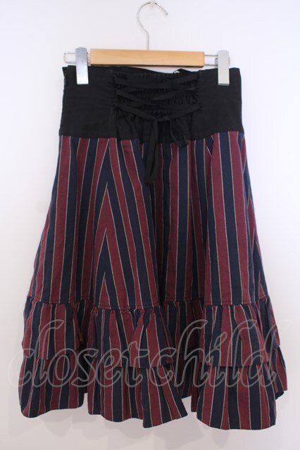 Innocent World / ストライプ編み上げスカート ネイビー×ワイン×クロ O-26-01-28-049-IW-SK-IG-OS