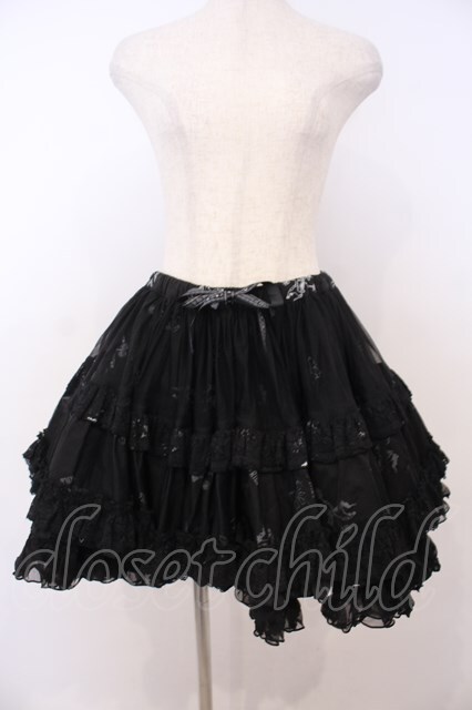 FRILL / プリントチュールボリュームスカート ブラック O-26-01-28-046-HN-SK-IG-OS