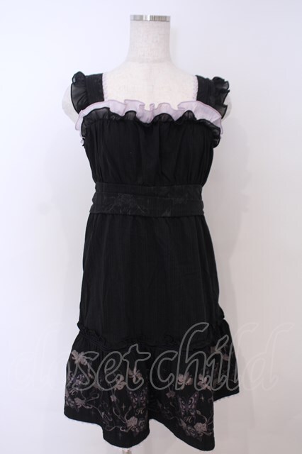 H jelly / シャドーストライププリントジャンパースカート ブラック×パープル O-26-01-28-057-HN-OP-IG-OS