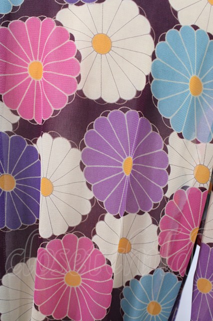 Despair / ギャザー袖和柄シースルー羽織 レトロ菊紫×ブラック H-26-02-02-1060-GO-TO-KB-ZH [戻る]