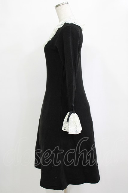 an another angelus / フレアーレース衿ニットワンピース Free BLACK H-26-02-03-023-CA-OP-NS-ZH