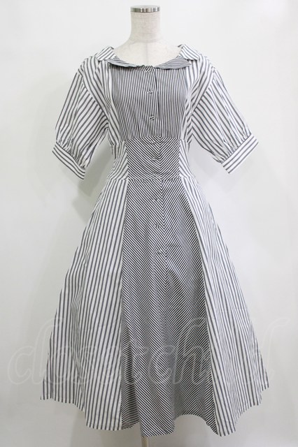 an another angelus / ランダムストライプ開衿シャツワンピース Free OFF×BK H-26-02-03-010-CA-OP-NS-ZH