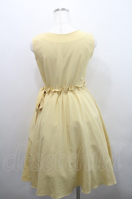 axes femme / サイドリボン&レースノースリーブワンピース イエロー I-26-01-29-044-AX-OP-SA-ZI