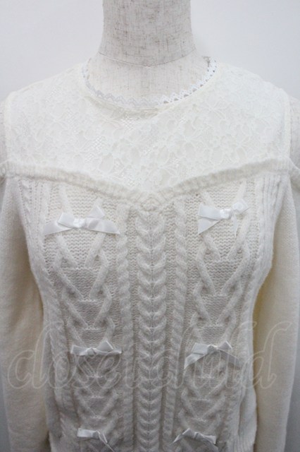 axes femme POETIQUE / メニーリボン肩あきニットプルオーバー アイボリー I-26-01-29-007-AX-TO-SA-ZI