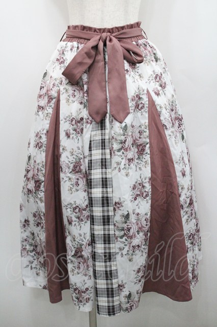 axes femme / 花柄×チェック柄切替スカート 白Xピンク I-26-01-29-093-AX-SK-SA-ZI