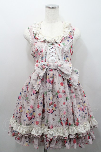 FRILL / ローズ&スウィーツプリントジャンパースカート ピンク I-26-01-29-084-HN-OP-SA-ZI