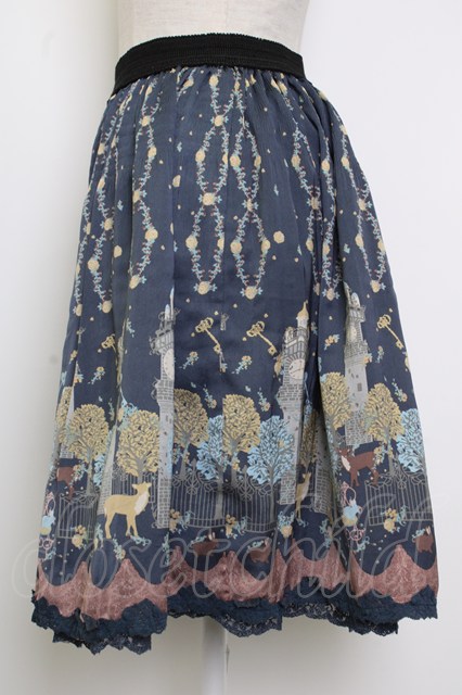 axes femme / アニマル柄プリーツ風スカート ネイビー T-26-02-02-021-AX-TO-SA-ZT
