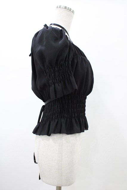Moi-meme-Moitie / シフォンレースアップブラウス ブラック H-26-02-03-1021-MO-BL-KB-ZH