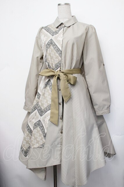 axes femme / スカーフ柄切換シャツワンピ カーキ S-26-01-29-044-AX-OP-AS-ZS