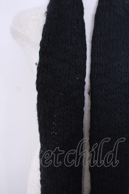 INGEBORG / ニット編みマフラー クロ O-26-01-29-1066-LO-ZA-IG-OS
