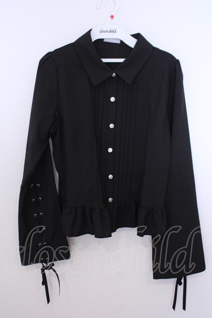 axes femme POETIQUE / レースアップデザインブラウス M クロ O-26-01-29-1022-AX-BL-OW-OS