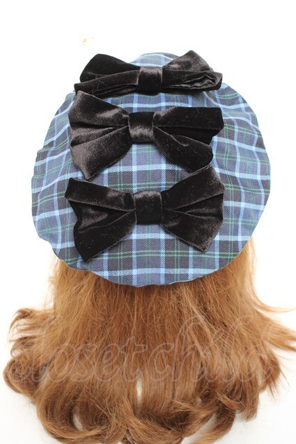 axes femme kawaii / タータンチェックベレー帽 青 Y-26-01-31-034-AX-AC-SZ-ZY