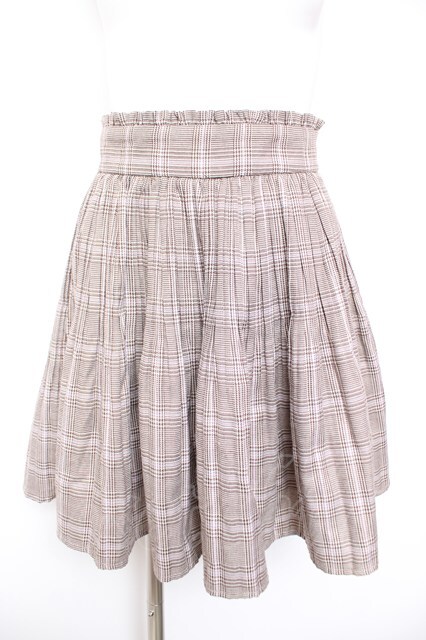 Ank Rouge / チェック柄プリーツスカート M ブラウン Y-26-01-31-152-CA-SK-SZ-ZY